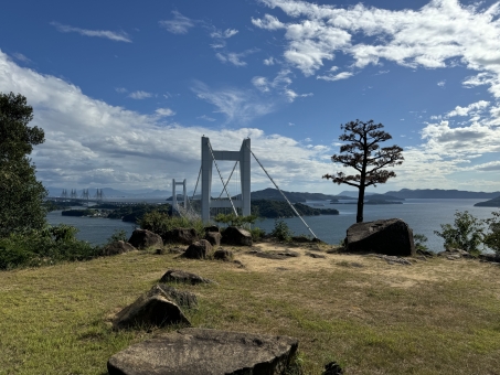 岡山市から約1時間のドライブで鷲羽山展望台に到着。標高133mの山頂からは、瀬戸内海の多島美を360度のパノラマで楽しむことができます。特に、瀬戸大橋と島々が織りなす風景は絶景です。