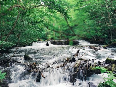 十和田湖から車で約30分の場所にある奥入瀬渓流も見逃せません。この渓流は、美しい滝や清流が続く約14kmの自然歩道が魅力です。車を停めて、ハイキングを楽しむこともできます。特に秋の紅葉シーズンは絶景です。